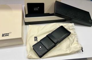 Astuccio originale Montblanc per conservare due strumenti da scrittura. Colore nero. Materiale in pelle. Include una borsa protettiva. Nuovo, mai usato, con tutte le scatole e la documentazione.