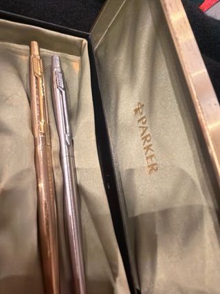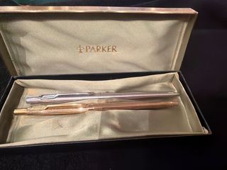 Elegante set di due penne Parker, una penna stilografica e una penna a sfera, con finiture in argento e oro. Unico difetto sulla scatola ho tolto etichetta,prezzo ottimo - Design classico e raffinato. - Ideali per un regalo speciale.