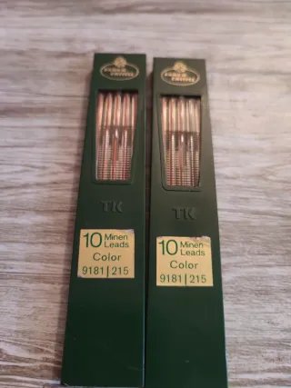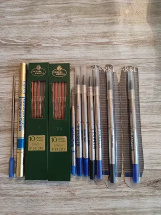 Set di ricambi per penne e matite. - 2 confezioni di matite Faber-Castell TK 10 (Colore 9181 215). - 5 cartucce d'inchiostro Parker Roller Ball (vari colori). - 1 cartuccia d'inchiostro Parker Ball Pen Refill. - 1 cartuccia per matite per penna Cross. 3 euro ciascuno.