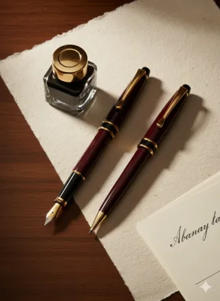Elegante set composto da due penne, una stilografica e una a sfera, perfette per chi ama scrivere con stile. - Penna stilografica con pennino dorato. - Penna a sfera con finiture dorate. - Corpo delle penne in colore bordeaux scuro.