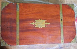 Antico writing slope scrittoio da viaggio nautico militare vittoriano in piuma di mogano massello contiene 3 vani segreti nascosti. Lo scrittoio da viaggio è l’antenato del laptop e del tablet di oggi. Aveva la funzione di consentire il lavoro di scrittura anche in situazioni disagevoli. I modelli più elaborati erano dotati di cassetti e di scomparti per mettere in ordine fogli di carta, buste, boccetta per l’inchiostro penne pennini, carta assorbente, biglietti da visita, boccetta per il borotalco, ceralacca. Lo scrittoio da viaggio ebbe fortuna negli anni dal 1500 alla seconda metà dell’ottocento quando era di moda il “grand tour”
