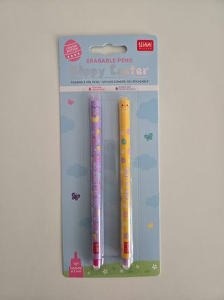 Set confezionato di 2 penne gel cancellabili Legami Pasqua. Le penne sono nuove. - Design coniglietto e pulcino.