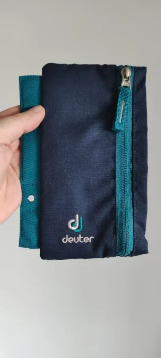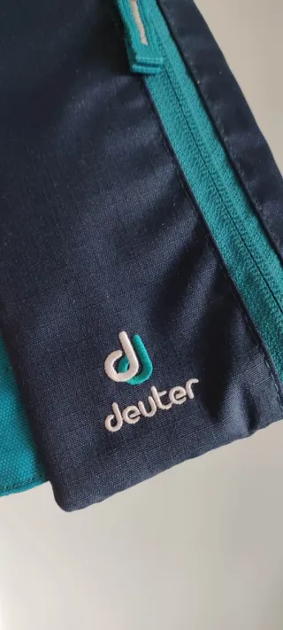 Astuccio porta penne Deuter in tessuto blu. - Logo Deuter ricamato. - Zip di chiusura color petrolio. - Tasca esterna con zip.