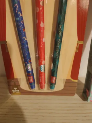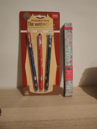 Set di 3 penne cancellabili Legami a tema natalizio. Ventaglio Legami - Design ispirato a Lo Schiaccianoci. - Colori assortiti: blu, rosso e verde. - Punta da 0.7 mm.