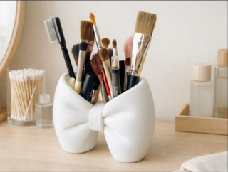 Elegante porta penne e pennelli da trucco da 15 cm con fiocco decorativo, firmato Q_Craft. Perfetto per organizzare penne, matite, pennelli make-up e accessori da scrivania o da toeletta con stile e raffinatezza. Il design delicato con fiocco lo rende ideale per camera, bagno, scrivania, vanity table o postazione trucco. Compatto ma capiente, aiuta a mantenere ordine aggiungendo un tocco decorativo elegante e femminile. Adatto a stili moderni, romantici e minimal chic. Ottima idea regalo per amanti del make-up, della cancelleria e dell’organizzazione elegante. Accessorio pratico e decorativo per casa, studio o beauty corner.
