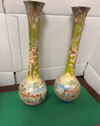 Coppia di antiche bacchette cinesi. Realizzate molto probabilmente in osso Parti in Argento dipinte a mano condizioni come da foto primi del 900