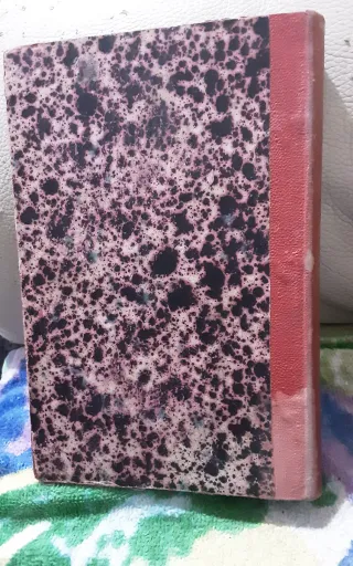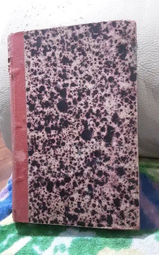 Libro antico risalente al 1882. - Copertina con motivo marmorizzato. - Dorso in tessuto rosso.