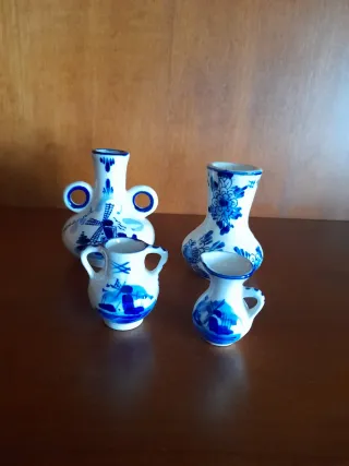 Delizioso set di 4 mini vasi in ceramica con il classico decoro blu Delft. - Decorazione con paesaggi e mulini a vento. - Ideali come soprammobili. - Ceramica di qualità. Il prezzo si riferisce al set di 4 pezzi