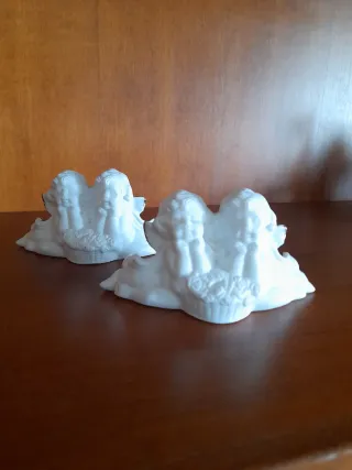 Deliziose decorazioni in ceramica bianca raffiguranti putti con cesto di fiori. - Set da 2 pezzi. - Design classico e raffinato. Larghezza 12 cm Altezza 6,5 cm Il prezzo si riferisce al set da 2 pezzi