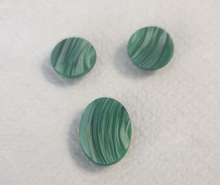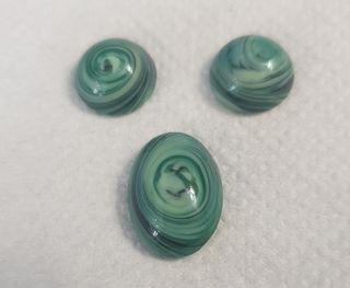 Tre pietre di malachite lavorate con un design a spirale unico. Le tonalità di verde creano un effetto visivo accattivante ideali per montare su un anello e 2 orecchini. Misure la più grande 1,8 cm le 2 più piccole 1,2 cm. - Materiale: Malachite naturale. - Lavorazione: Spirale. - Quantità: 3 pezzi.