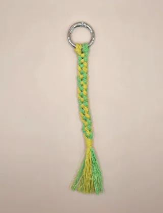 Portachiavi dai colori vivaci, realizzati a mano con tecnica di macramé. Misurano: Giallo e verde - cm 15 Giallo e blu - cm 13 Sfumature di azzurro - cm 16 Prezzo a unità, sconto su più pezzi.