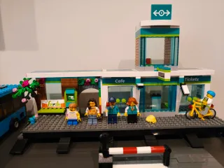 Set Lego City Stazione Treno 60335 NON completo di tutti i pezzi. - Include stazione, binari, passaggio a livello, bus e camioncino. - Personaggi inclusi: 6 minifigure. - Accessori come bicicletta, fiori e segnali. Manca: Istruzioni l'operaio Una decalcomania sul bus Alcuni attrezzi da lavoro e il bidone verde sul furgone Rimontato per verificare i pezzi.