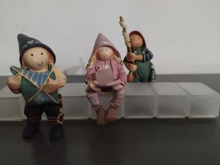 Fortune folk by Annemarie. In set, tre gnomi da collezione, solo uno marchiato sul retro. Perfettamente conservati, pari al nuovo. Alti 6 cm.