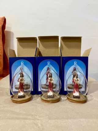Set composto da 16 statuette del Sacro Cuore di Gesù 🙏, racchiuse in eleganti cupole in vetro soffiato trasparente ✨. Ogni figura è dipinta a mano 🎨 con abito rosso e bianco, cuore in rilievo e base decorativa dorata. Un prodotto artigianale religioso perfetto per collezionisti, decorazioni sacre, bomboniere spirituali o regali di fede 🎁. Essendo realizzate a mano, eventuali imperfezioni sono parte del processo creativo e ne testimoniano l’autenticità. Chi acquista accetta questa condizione come segno di unicità e valore ❤️. Ideali per ambienti religiosi, esposizioni, regali cristiani o come simbolo personale di protezione e devozi