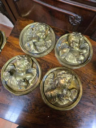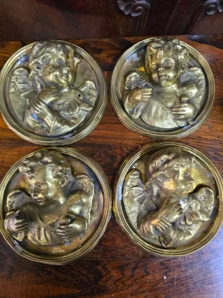 4 Bassorilievi in Ottone Puttini d'Epoca