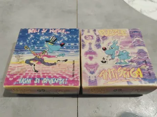 Puzzle del Lupo Alberto, con 99 pezzi. La scatola è ancora sigillata e mai aperta. - Raffigura il Lupo Alberto in una scena con la scritta Belli si nasce... Figli si diventa!. - L'altra scatola raffigura il Lupo Alberto con la scritta Puzzle Antisfida. - Entrambi i puzzle sono del 1993, Silver/McK. - Scatole originali e integre.