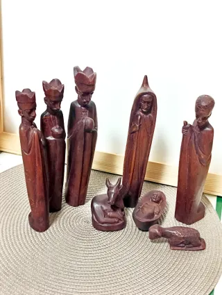 Presepe etnico in legno con statuette alte circa 20 cm, interamente intagliate a mano con tratti decisi e minimalisti tipici dell’arte etnica. Pezzi artigianali da collezione, perfetti anche come decorazione natalizia. Vendo dalla mia collezione per fare spazio. Condizioni ottime come da foto. 🚚 Spedizione disponibile, no consegna a mano.