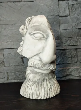 Realizzato e pitturato a mano Pezzi unici Materiale: Gesso Alabastrino Colore grigio chiaro finitura effetto pietra Misure descritte in foto Elegante scultura mitologica figura testa del capo Artemisio Zeus. Volto / faccia astratta stilizzata fermalibri decorazione casa minimal chic Arredamento design vintage retrò divino maschile Elemento decorativo ornamento scultura soggetto figura uomo barbuto Zeus oggetto da tavolo mitologia greco romano Poseidone creativo giano stile arte decò Complemento di arredo soprammobile statua greca viso espressione facciale design dio del cielo e del tuono Busto testa divinità greca moderno