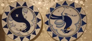 Bellissima coppia di piatti in ceramica di Faenza, con decorazioni artigianali in blu. - Design tradizionale. - Finitura smaltata lucida. - Ideali come soprammobili o per decorare la tavola.