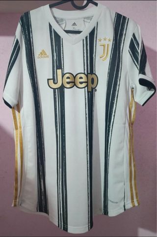 Maglia da calcio originale Juventus, modello con sponsor Jeep e logo Adidas. Design a strisce bianche e nere con dettagli dorati. - Taglia XL - Logo Adidas - Sponsor Jeep - Strisce verticali bianche e nere - Dettagli dorati sulle maniche e sui lati