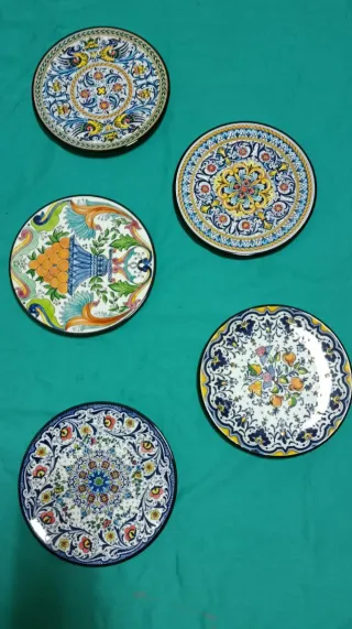 Bellissimi piatti decorativi in ceramica, ideali per appendere alla parete e per collezionisti. Presentano diversi design decorativi artigianali spagnoli antichi del XX secolo realizzati a mano. Senza crepe. Si vendono separatamente (si considera la vendita del pacchetto completo di tutti i piatti). Il prezzo indicato corrisponde a ogni unità (ogni piatto). Per maggiori informazioni sul pacchetto di piatti, chiedere (astenersi da offerte non correlate).