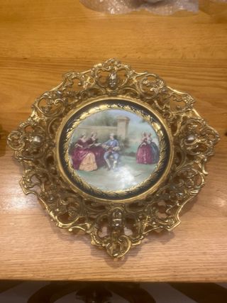 2 Piatti Decorativi in Bronzo e Porcellana