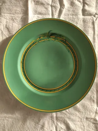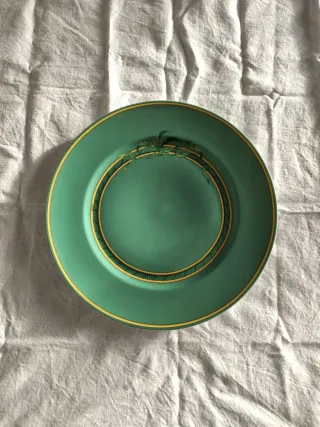 Vendo Splendido Piatto Hermès Toucans diametro 30,3 centimetri. In ottime condizioni. Ho altri cinque Piatti identici a questo dell'annuncio. Elegante piatto Hermès in una bellissima tonalità di verde. - Bordo decorato con una sottile linea dorata. - Motivo decorativo interno con elementi vegetali dorati. Prima di acquistare osserva tutte le foto e il video-short che trovi nel mio canale youtube myvideo5128 Hermès Marqueterie Sèvres decorato Sevres Capodimonte Royal vienna royal albert meissen vintage cozy Antiquariato arredamento modernariato porcellana ceramica arte moderna collezione