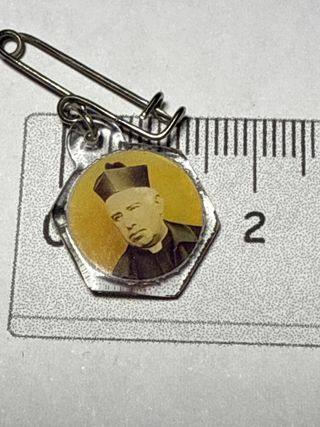 Medaglia Reliquia ex indumentis con effigie del Beato Don Vincenzo Grossi. - metallo Argentato - Diametro 2 cm circa