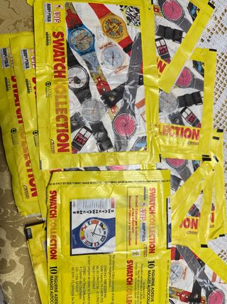 Confezione da 25 bustine di figurine Swatch Collection edite da Edis. - Ogni bustina contiene 10 figurine adesive. - Prodotto Made in Italy.