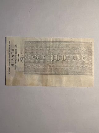 Mini assegno circolare emesso dall'Istituto Bancario Italiano. - Valore: 100 Lire - Data: 6-12-1976 - Emesso a Torino - Gruppo Finanziario Tessile S.p.A.