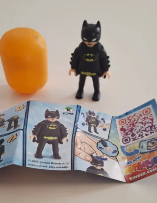Sorpresa Kinder con figura Playmobil DC Comics del 2025. - Figura de Batgirl. - Incluye capa negra. - Folleto de instrucciones.