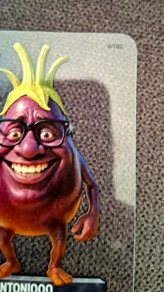 Lamincard della serie Multiverse. - Personaggio: Antoniooo - Serie: Italian Brainrot - Numero: 4/162 - Valori: Trash 5, No-Sense 190