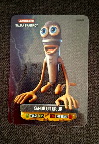 Lamincard della serie Multiverse. - Personaggio: Italian Brainrot - Numero carta: 113/162 - Valori: Trash 85, No-Sense 35