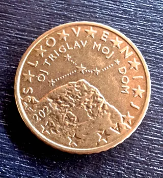 Moneta da 50 centesimi della Slovenia, coniata nel 2021. Raffigura il monte Triglav e la costellazione del Cancro. - Anno di conio: 2021 - Paese: Slovenia - Valore: 50 centesimi