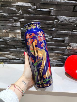 Vaso giapponese Kutani cobalto gallo oro vintage