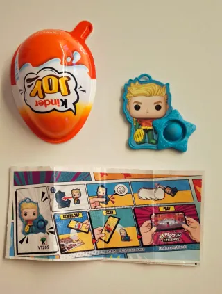 Confezione Kinder Joy con sorpresa Funko Pop DC Comics del 2023. Include la figura del personaggio e il foglietto illustrativo. - Figura Funko Pop DC Comics. - Foglietto illustrativo con codice VT289. - Confezione Kinder Joy originale.