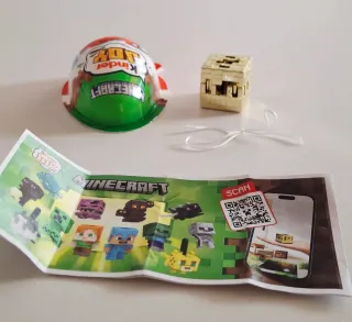 Un simpatico giocattolo Kinder Joy a tema Minecraft. Ideale per i fan del videogioco. - Personaggio Blocco di terra con erba. - Include foglietto illustrativo con istruzioni. - Prodotto originale Kinder Joy.