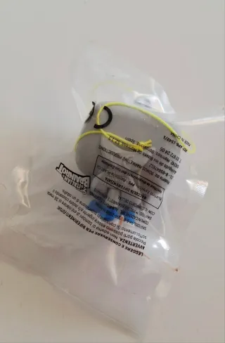 Sorpresa da un uovo di Pasqua Brainrot del 2026. - Personaggio grigio con occhi neri e sorriso. - Indossa scarpe blu. - Ha un laccetto giallo per appenderlo.