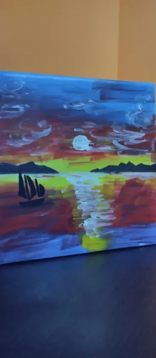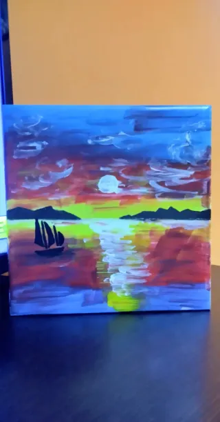 Piastrella disegnata e dipinta a mano.misura 25 cm x 25 cm.raffigira un paesaggio di mare