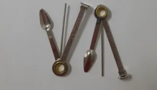 In acciaio inossidabile. Tampone, punzone e pala.