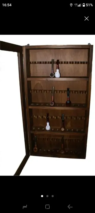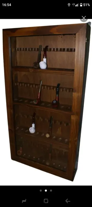 Vetrina espositore per pipe da tabacco. - Capienza totale di 44 pipe. - Struttura in legno. - Ripiani multipli per un'organizzazione ottimale. - Anta in vetro sintetico trasparente. Misure: - 82 cm altezza - 49 cm larghezza - 12 cm profonditá ATTENZIONE! SONO ACCETTATE SOLO SPEDIZIONI IN ITALIA! NON SPEDISCO IN SPAGNA O ALL' ESTERO, VI PREGO DI CONTATTARMI PER EFFETTUARE L' ACQUISTO CON ALTRI METODI E SPEDIZIONE CON ALTRI CORRIERI.