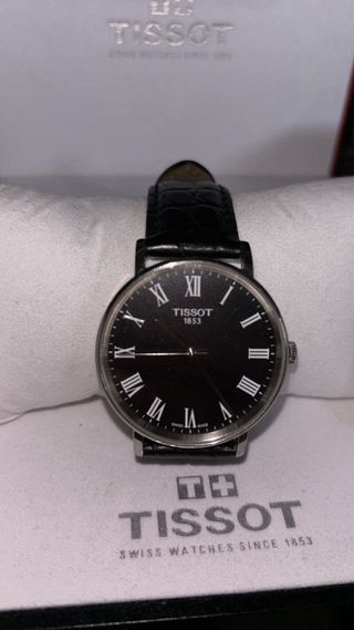 Orologio Tissot Everytime Medium con cinturino in pelle nera. - Cassa in acciaio inossidabile. - Quadrante nero con indici romani. - Movimento al quarzo svizzero.
