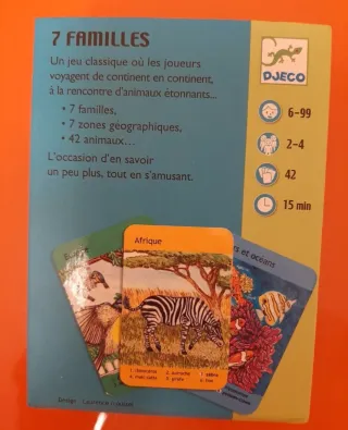 Gioco di carte 7 Familles di Djeco, con illustrazioni di animali del mondo. Adatto per bambini dai 6 ai 99 anni. - Illustrazioni di animali. - Gioco di velocità. - Lingue: Francese, Inglese, Tedesco, Spagnolo.