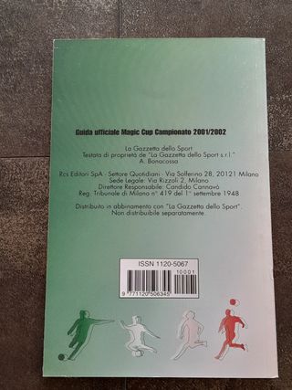 La guida al fantacalcio, La gazzetta dello sport, stagione 2001/2002 ,articolo raro da collezione.