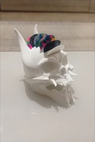 Teschio 3D per posizionare i plettri per chitarra. Disponibile in bianco e nero. Richiedi altri colori. * Marshall, Fender, Engl, Mesa Boogie, Heavy Metal, Rock, Black, Ibanez, amplificatore, basso elettrico, batteria, mapex, pearl, tama. Porta-piccone