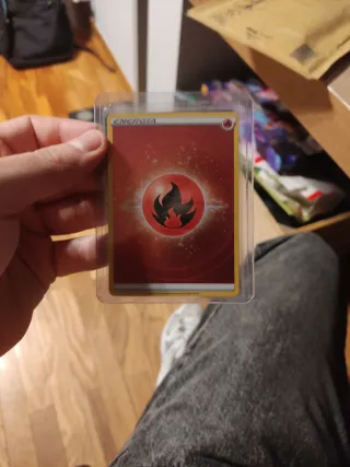 Carta di Energia Fuoco di Pokémon. - Illustrazione di fiamma. - Testo 'ENERGIA' nella parte superiore.