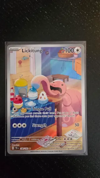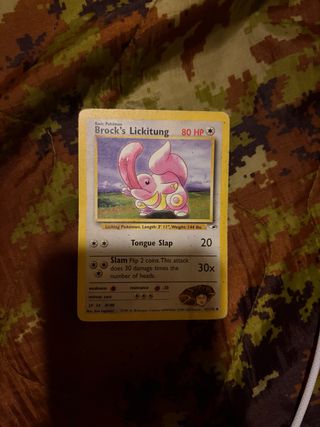 Carta Pokémon Brock's Lickitung. - Carta base. - Attacco: Tongue Slap (20 danni). - Attacco: Slam (30x danni). - Livello 24, numero 108.
