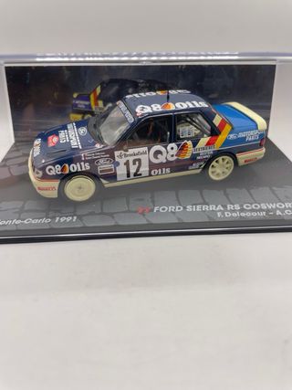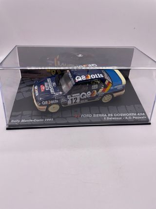 Modellino della Ford Sierra RS Cosworth, vincitrice del Rally Monte-Carlo nel 1987, in scala 1/43. - Dettagli fedeli alla vettura da competizione. - Livrea Texaco e sponsor dell'epoca. - Base espositiva con nome del pilota e navigatore. 13