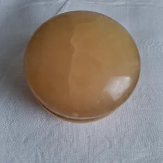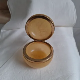 Piccola scatolina rotonda in alabastro di Volterra, con finiture dorate. - Materiale: Alabastro di Volterra - Finiture: Metallo dorato