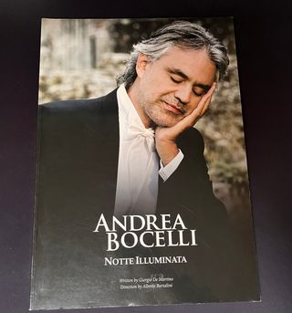 Libro Notte Illuminata di Andrea Bocelli, un'opera rara e difficile da trovare. libro raccolta 136 pagine formato gigante maxi 41 x 30 cm faxi fotografie. Raro introvabile rarità fuori commercio - Scritto da Giorgio De Martino. - Diretto da Alberto Bartalini.